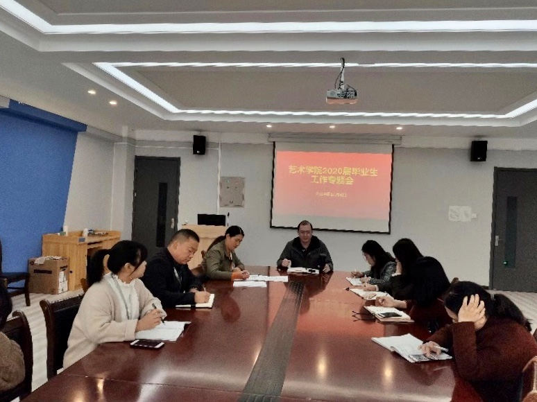 为确保我院毕业生顺利就业,给学生提供丰富的就业资源,艺术学院于2019年11月6日在艺术楼411会议室召开关于2020届毕业生毕业就业事项工作部署,参加会议的有书记韦杨建、行政秘书曹华莹和全体毕业班辅导员。