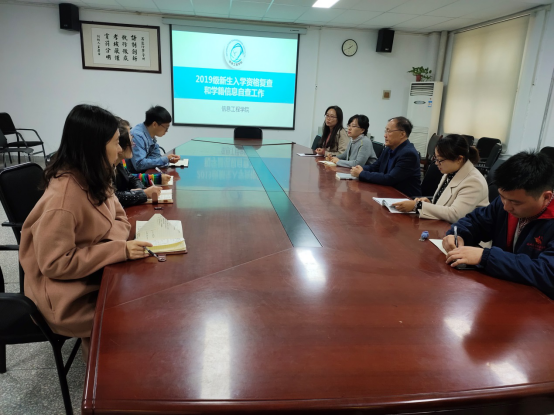 11月4日下午,信工学院在资讯楼104会议室召开了2019级新生复查工作总结会,院长李学桥,副院长白鑫、党总支书记王新平、教学秘书赵会燕、行政秘书王崇及全体新生辅导员参加了会议,会议由我院教学秘书赵会燕主持。