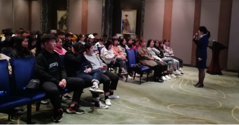 2019年11月3日上午,在管理学院酒店管理专业梁淑芬、张丽霞、王宇三位老师及郭子良、郭梦轲两位辅导员的带领下,2019级酒店管理专科、本科四个班级近240名学生同赴郑州天地丽笙酒店,进行专业认知。