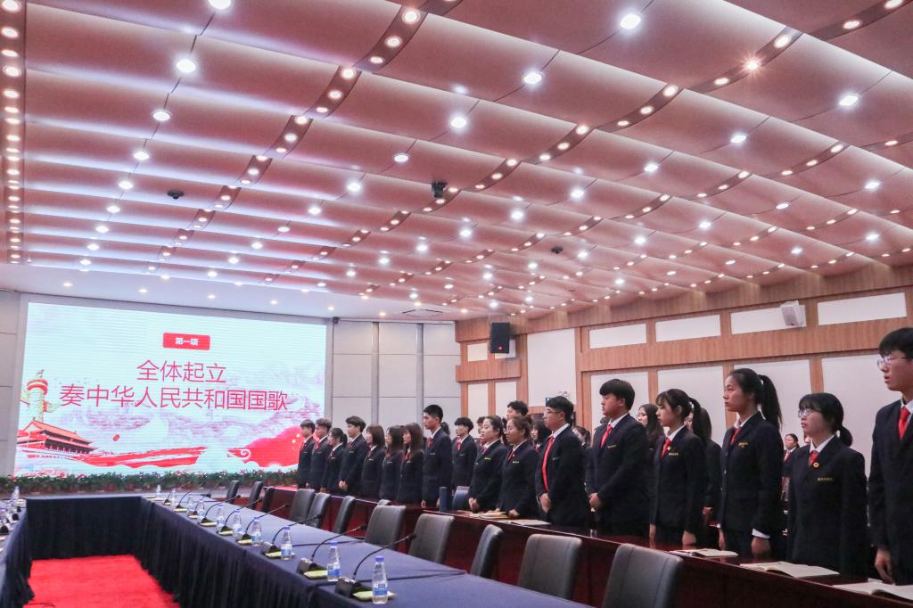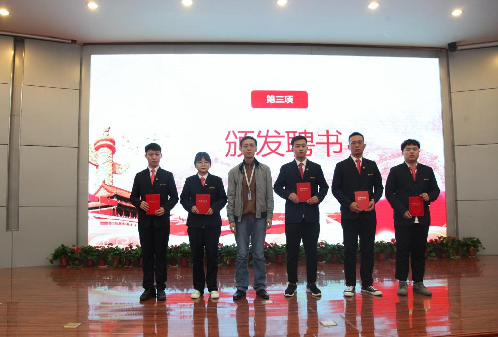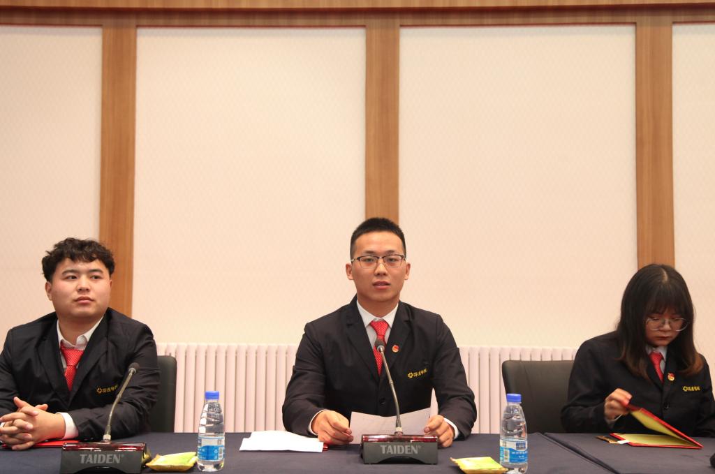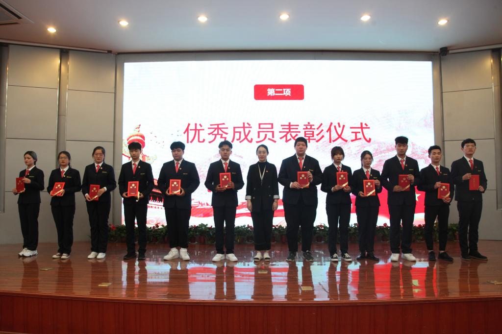会议在雄壮的国歌及共青团团歌中拉开序幕,校团委社团文体部老师孔靖雯为23届学生会优秀成员代表颁发荣誉证书;校团委副书记李松涛为第24届校学生会负责人代表颁发聘书并合影留念。