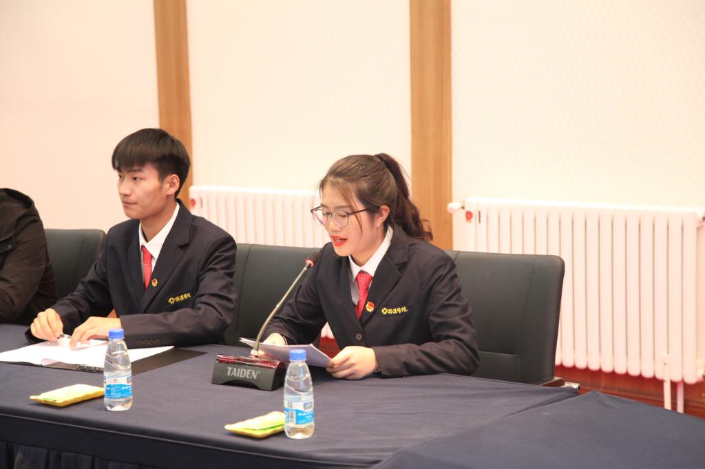 会上,第24届校学生会新生代表姚莎莎和校学生会部门负责人李婷玉在大会上相继发言。新生们是注入校学生会的新鲜血液,他们满怀憧憬与期待;部门负责人代表则表达了他们努力做好工作的决心,懂得心怀感恩,从自身做起,肩负起身上的责任。