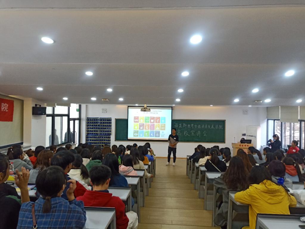 为加强男女平等观念的意识,激励女性树立自信,2019年11月10日下午两点半外国语学院邀请西亚斯世界女性未来发展学院的宣讲团队来校讲座。本次讲座关键词为“自信”,本次参会人员为外国语学院外国语学院19级新生、外国语学院团学心悦部及升达心理健康协会成员约120人。