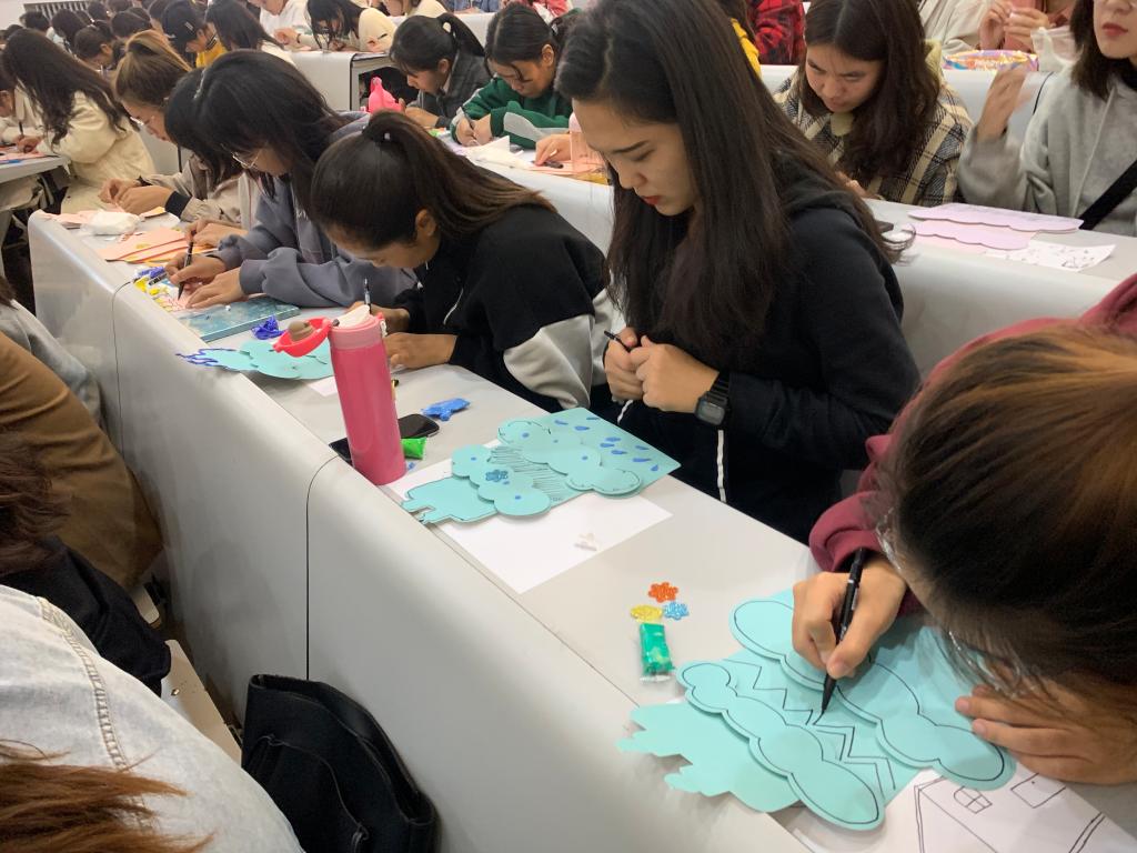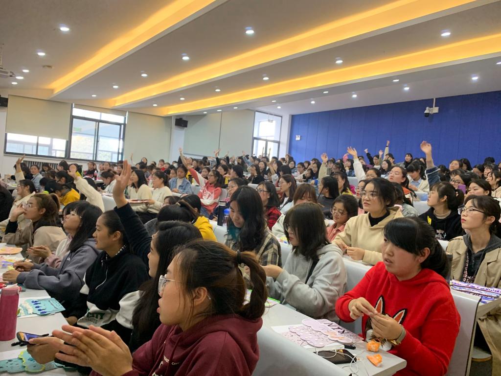 邓小燕老师以生动的语言和形象的教学方式带领学生走进幼儿美术教育的殿堂,她以丰富的知识感染学生,在带领学生现场动手体验创意美术的同时,还重点引发学生深刻思考幼儿美术教育的应然与实然状态,并呼吁同学们持续探索世界幼儿美术教育的出路,为孩子的全面发展做出自己的贡献。现场学习气氛浓郁,学生积极性好,参与度高,此次学术报告取得了圆满成功。