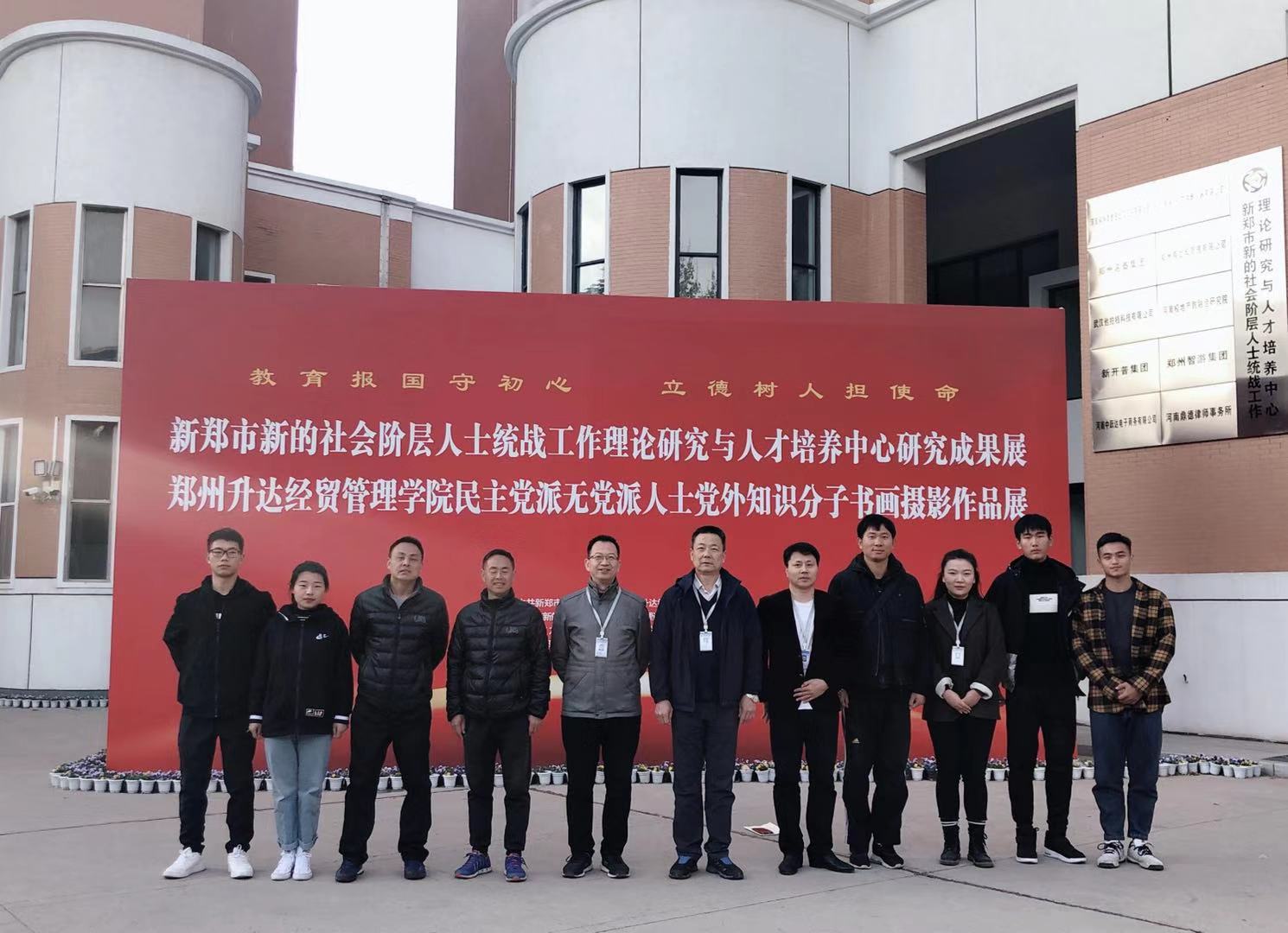 11月18日下午,体育学院院长、民革河南省委员丁英俊教授带领体育学院党外知识分子代表、新的社会阶层人士代表以及部分师生党员来到学校综合实训大楼,参观新郑市新的社会阶层人士统战工作理论研究与人才培养中心研究成果展、民主党派无党派人士党外知识分子书画摄影作品展。