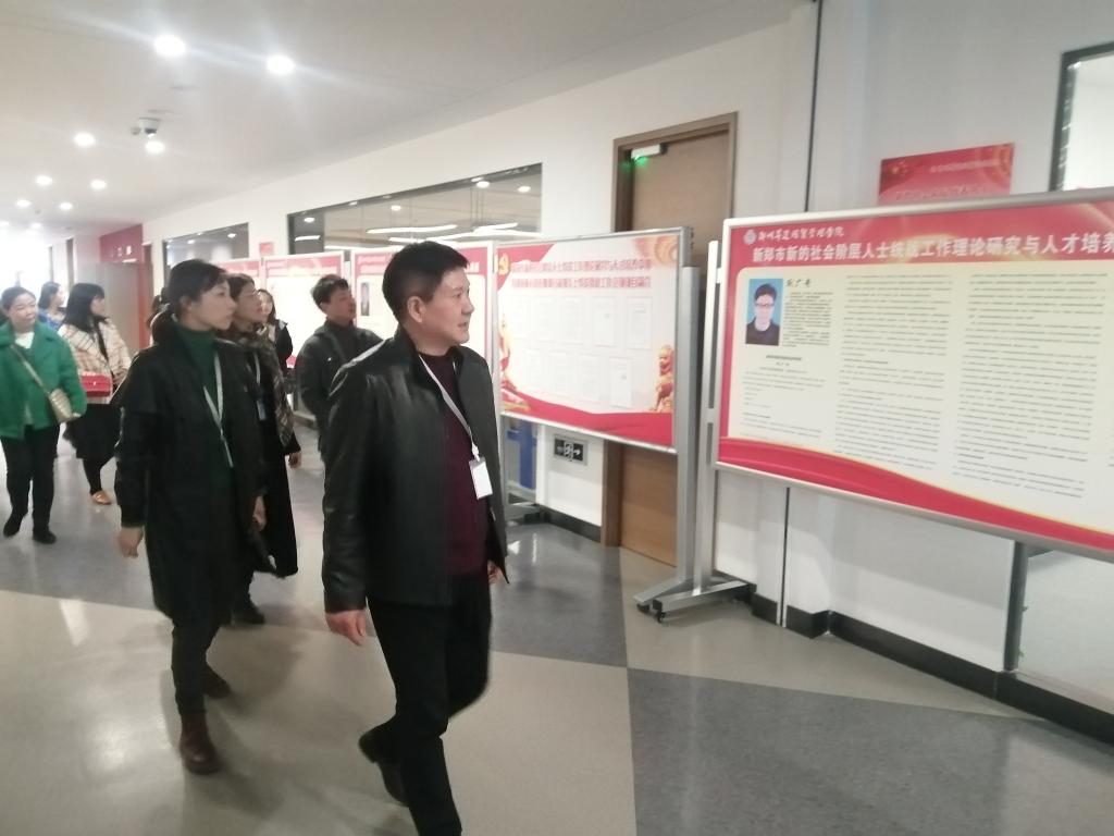 最后大家观看了研究成果展示区,此区域展示了执行董事王新奇博士、党委书记张德伟同志、校长郭爱先教授亲自参与并主持的相关研究课题,以及马克思主义理论和思想政治方面的丰硕成果。由此可见我校董事会和学校领导对新的社会阶层人士统战工作理论研究与人才培养工作的高度重视。