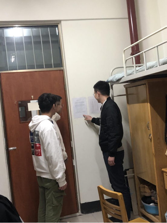 室内活动主要是:建工学院辅导员白君泽深入宿舍进行宣讲,告诉同学们抽烟的危害以及寝室二手烟的厉害,并且在学生宿舍内张贴控烟条例落标识等。