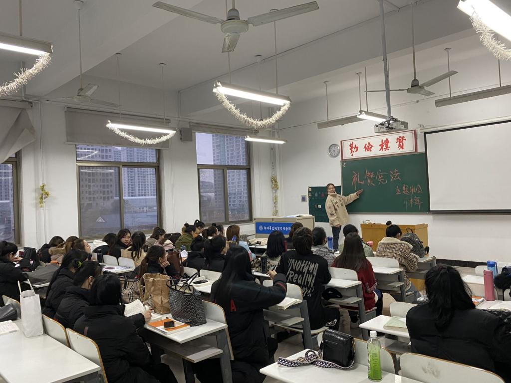 为认真做好宪法学习宣传和贯彻实施工作,进一步强化学生的宪法意识,营造良好的宪法宣传氛围,体育学院于11月27日召开了“礼赞宪法”主题教育班会活动。本次会议由体育学院辅导员陈阳光老师主持。