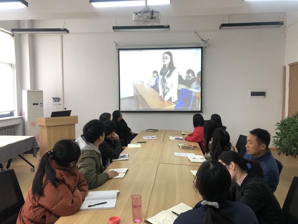 会上组织辅导员观看西北大学优秀辅导员召开“弘扬优秀传统文化、提高大学生综合素质”主题班会的视频,让大家学习先进经验。
