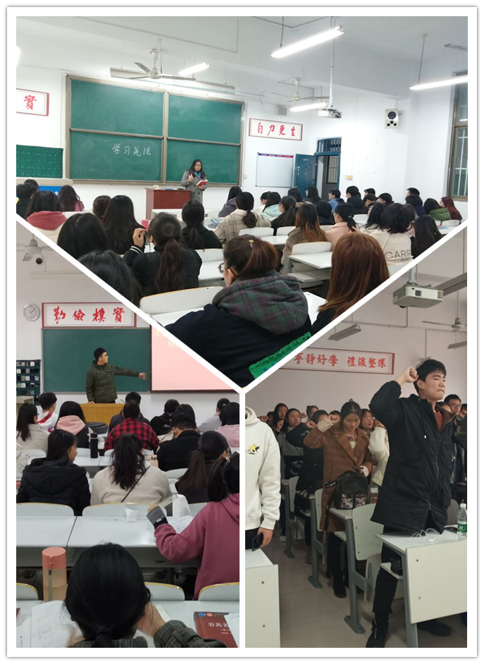 各班级在辅导员老师的指导下开展了形式多样的特色主题活动:19级营本、物本通过知识问答、集体宣誓,让学生感受宪法的地位、作用与权威;19广本、营专、物专通过观看“宪法之光,照亮中国”,让学生了解宪法的制定、修订及实施历程;18电本、营本法通过“讲宪法、学宪法”主题宣讲,让学生了解法治精神和宪法知识;17广本、电本通过案例分析、观点交流,让学生做到知法、懂法、守法。