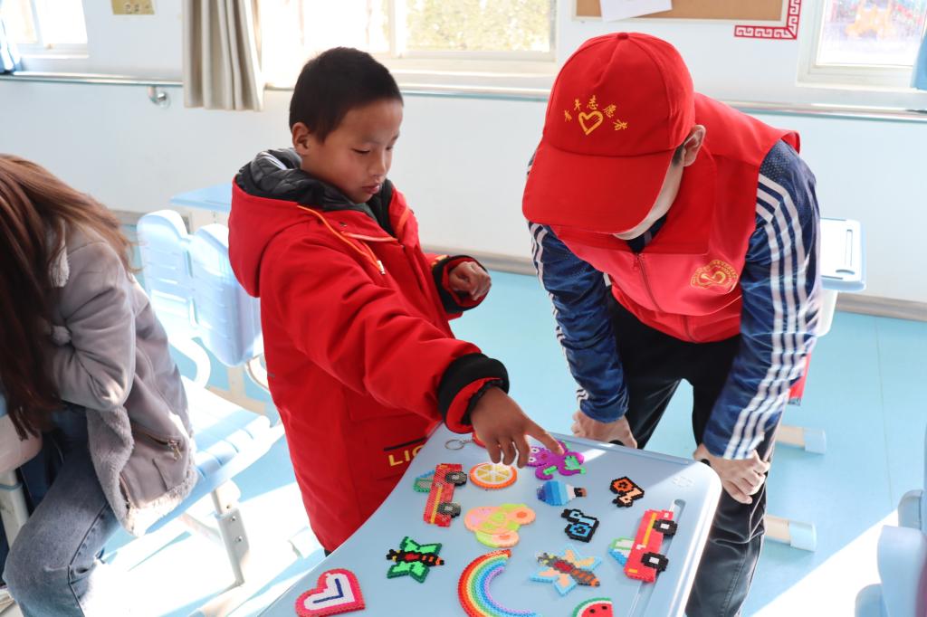 下午2点,志愿者按照音乐组、美术组、体育组、舞蹈组,跟随前往教室。音乐组组织孩子们合唱;美术组和手工组带领孩子做手工手工;体育组负责讲解基础的方向转弯,并同孩子们做老鹰捉小鸡、投沙包等简单的游戏;舞蹈组教授孩子们儿童舞蹈。在这过程中,孩子们克服自身缺陷积极参与活动,乐观积极的精神也感染、感动着我校志愿者。下午5点,志愿者同孩子们将教室清扫干净,在歌声中和孩子们说再见。