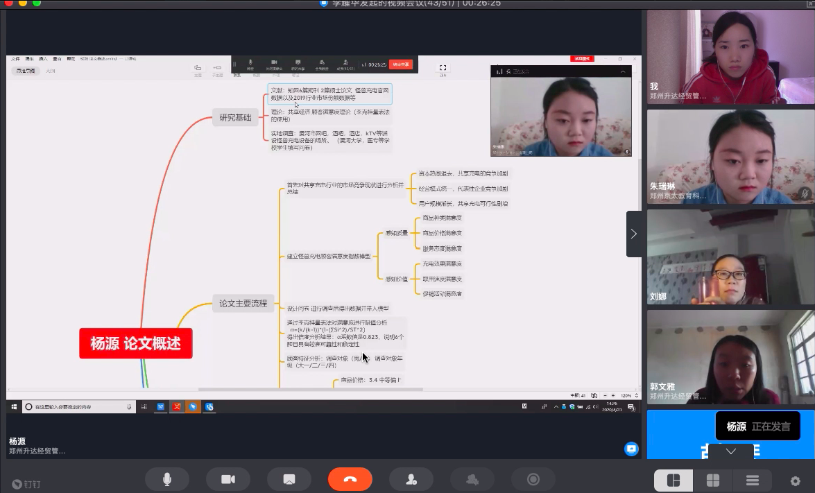 商学院2020届本科毕业生于4月23日下午、4月24日下午和4月25日全天,分为13个答辩小组,在“钉钉会议”上进行了第一次本科毕业论文网络视频答辩。