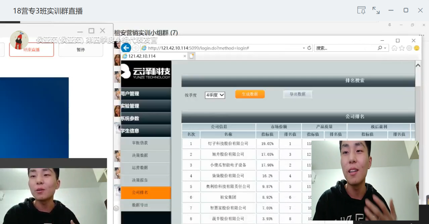 4.最后老师直播点评。每一季决策操作完成后,老师需要在钉钉上总结各小组决策成败的原因,并结合专业知识进行点评,帮助学生找出原因,为下一期做准备。