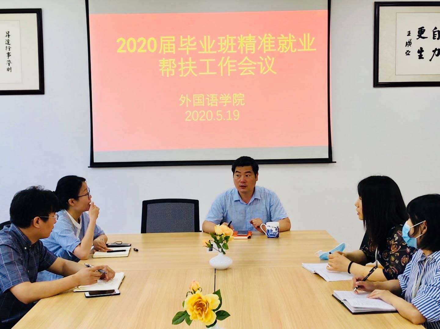 为进一步做好2020届毕业生精准就业服务工作,5月19日,外国语学院在会议室召开2020届毕业生就业精准帮扶工作推进会,会议由党总支书记石皓召同志主持,行政秘书惠凯赟老师,以及全体2020届毕业班辅导员参加了此次会议。