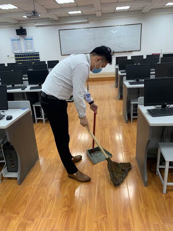 由于现在还在疫情防控时期 ,会计实训中心从第9周开始(4月20日)每周一、三、五各派一位会计实训中心的工作人员到商管楼会计实训中心2-4层进行卫生安全检查和打扫工作,会计实训中心的工作人员按照会计实训中心安全卫生工作条例和学院的工作安排开展安全卫生工作。同时在线上给大家普及爱国卫生月的主题知识,进一步学习会计学院实训中心安全卫生工作条例。