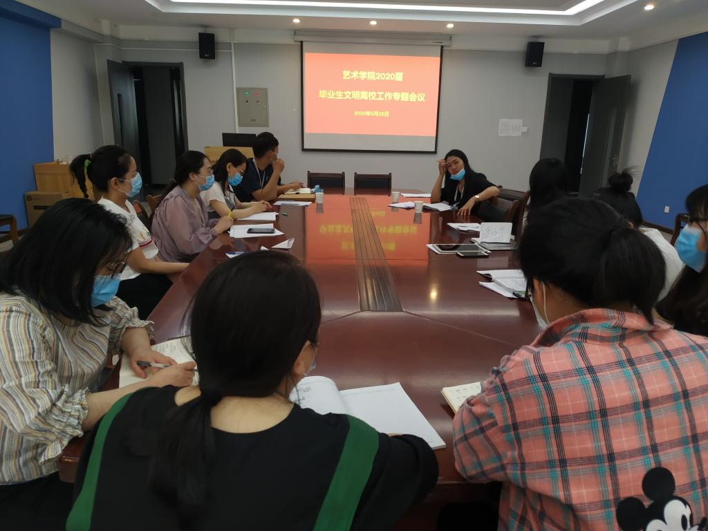 在外防输入,内防反弹和疫情防控常态化的特殊背景下,为确保2020届毕业生安全返校、文明离校做好组织和服务工作。5月26日下午,艺术学院在艺术楼411会议室召开了2020届毕业生文明离校工作专题会议。会议由行政秘书曹华莹老师主持,全体辅导员参加。
