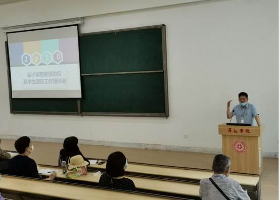 在本次会议上,张红阳书记根据《关于做好疫情防控期间我校教职工培训工作的通知》精神,分析了近期工作重点,介绍了包括疫情知识、防护措施、应急处置流程等,要求会计学院同仁们正确认识当前疫情防控形势,提高思想认识,坚决遵守防范要求,关爱自身健康。同时强化责任意识和大局意识,积极参与学校毕业生返校工作。