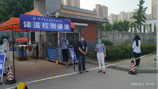 6月1号,在充分的研讨、准备、预演下,毕业生有序回到了达园的怀抱,回到了心心念的建工。建工学院党总支书记韩炎涛、院长杨开云、副院长高燕、行政秘书赵杨、教学秘书齐雷等人一早就在建工实训大楼门口做好了迎接同学们的准备。