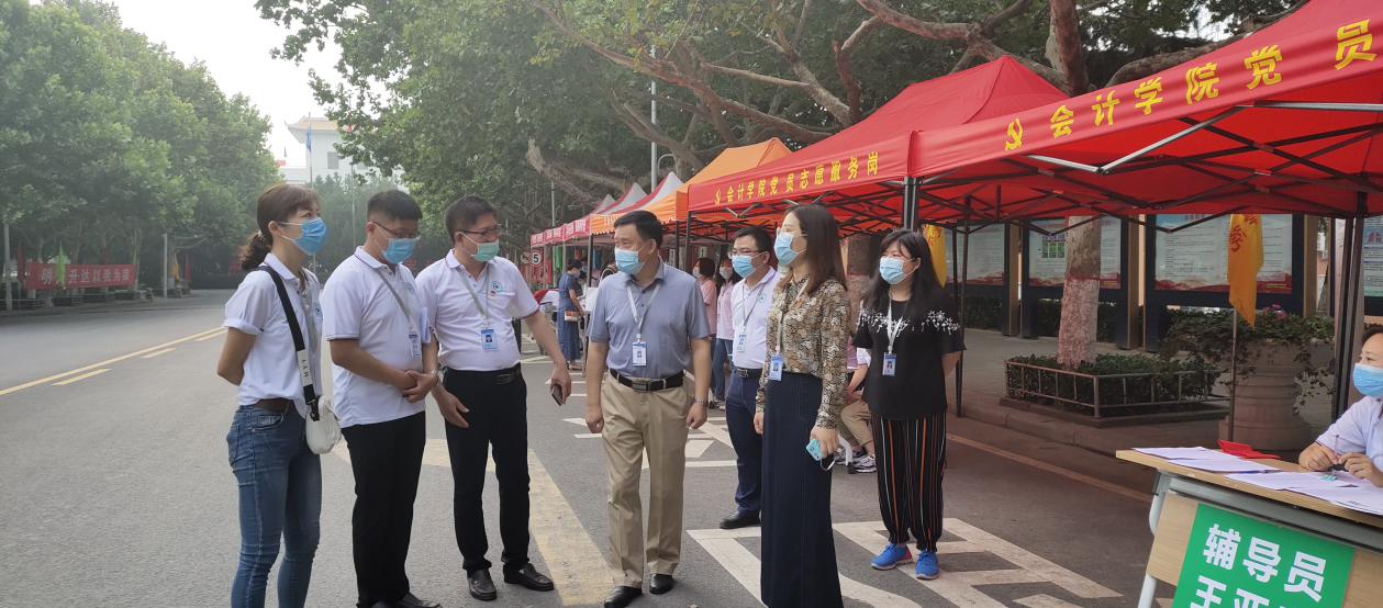 副校长吴益民莅临会计学院迎新岗位询问指导我院迎新工作,张红阳书记对2020届毕业生返校工作进行再动员部署,从入校到宿舍再到毕业证书的领取和离校手续的办理做了全面细致的部署和分工,强调会计学院全体教职工积极投入到迎接毕业生返校的工作当中,做好应急预案和后勤保障,首先要精心做好学生返校前各项准备工作,预案到位;其次精心做好学生返校期间各项工作,引导服务到位;再次精心做好学生返校后各项工作,教育管理到位。