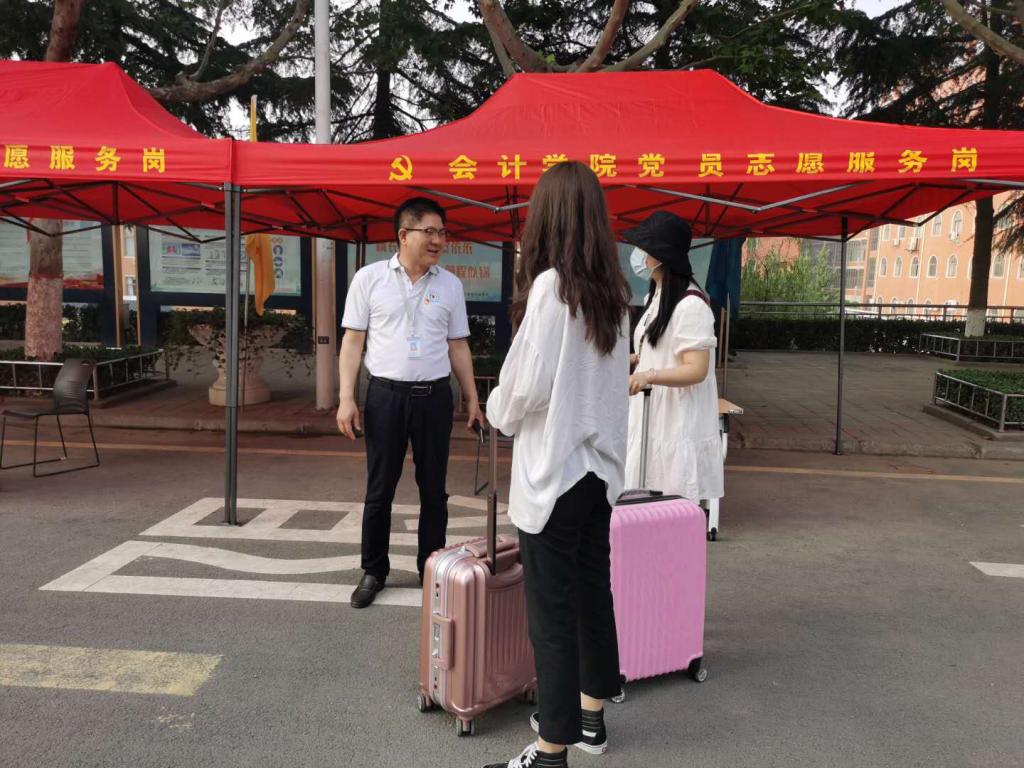 6月11日,会计学院迎来首批返校学子,为确保学生平安健康返校,我院各部门单位联防联动、严阵以待,副校长吴益民,会计学院党总支书记张红阳,院长张欣,副院长张新成,副院长毕鹏翾,行政秘书兼团委书记陈刚,行政秘书兼团委副书记刘锦带领会计学院志愿者老师们第一时间赶赴校园门口落实迎新分工分岗工作,把各项工作细化到点,将岗位职责落实到人。全方位为毕业生返校保驾护航。
