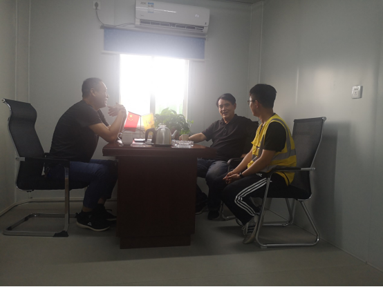 首先由升达建工学院15届毕业生陈政带领杨开云院长对廉政教育基地项目的现场进行全面的参观,并为杨院长讲解介绍该项目的具体情况。该项目是由中国共产党新乡市纪律检查委员会投资建设的项目,乃是新乡市重点项目之一,项目的目标也定位为鲁班奖项目。为保障该项目可以取得鲁班奖,整个项目无论是硬件设施的建设还是采用的施工工艺,均使用的是国内较为领先的技术,杨院长也表示,作为刚毕业不久的学生,可以参与到一个鲁班奖项目的建设,乃是十分珍贵的、不可复制的经历。接下来由河南省第二建设集团公司副总经理、第九分公司总经理、高级工程师董书立经理带领杨开云院长对项目办公区及生活区进行了参观,并与杨院长在办公室针对当今建筑行业所需要的人才进行了深入的交流。