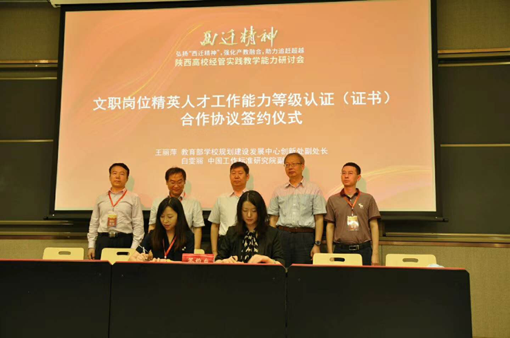 本次会议,教育部学校规划建设发展中心与中国工作标准研究院就文职岗位精英人才工作能力等级认证(证书)举办了合作协议签约仪式。教育部学校规划建设发展中心创新处副处长王丽萍与中国工作标准研究院副院长白雯丽作为双方代表签字。本次签约为首批入选教育部科学工作能力提升计划(百千万工程)项目的我校升达圆通科学工作院开展岗位精英人才培养提供了强有力的保障,有利于提升我校应用型人才的培养质量。