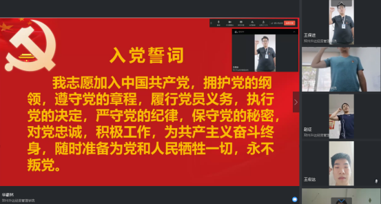最后,支部全体党员在王保进老师带领下重温入党誓词,坚定为共产主义事业奋斗终生的决心,激励党员以实际行动积极实践入党誓词,以饱满的精神发挥共产党员的先锋模范作用。