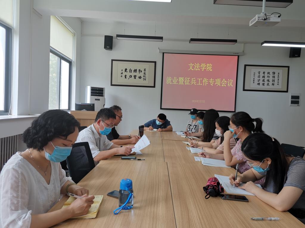 为进一步扎实推进2020年文法学院就业、征兵工作,落实上级关于征兵、就业工作的要求,文法学院于7月7日上午在教学一号楼314会议室召开文法学院征兵暨就业工作专项会议。文法学院院长段丰乐,书记杨明志,行政秘书郑玲玲,各教研室主任及全体辅导员参加会议。