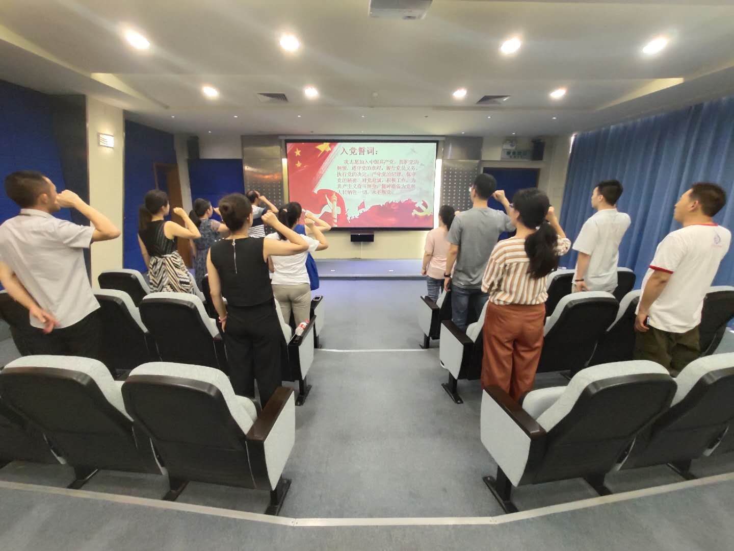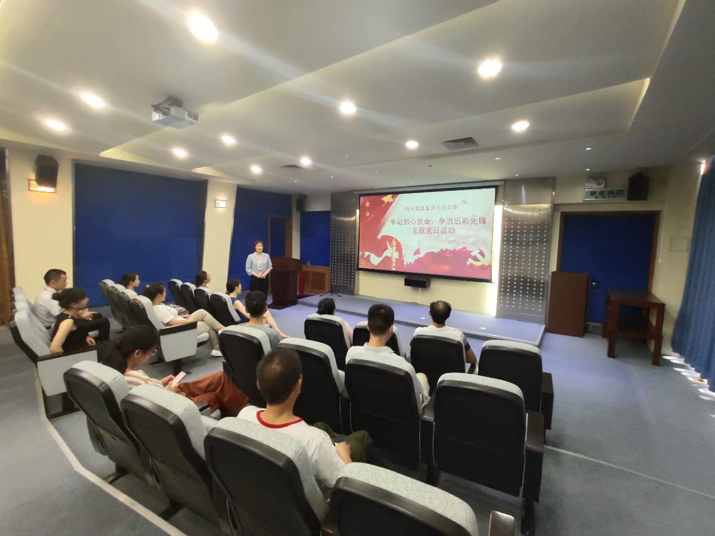 为庆祝中国共产党成立99周年,巩固和拓展“不忘初心、牢记使命”主题教育成果,按照校党委要求,7月7日,机关党总支第九党支部在图书馆三楼团体视听室开展了以“牢记初心使命、争当出彩先锋”为主题的党日活动,党支部书记郑晶主持仪式,支部全体党员参加。