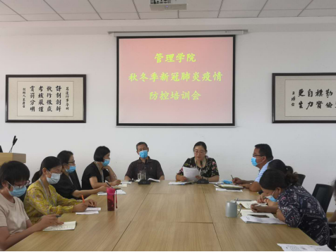 8月31日,为持续强化校园疫情防控力度,有效应对秋冬季可能出现的新冠肺炎疫情,管理学院于2号楼209召开全体教职工秋冬季新冠肺炎疫情防控培训会。管理学院院长纪德尚、党总支书记张小雁、学院副院长唐云、教学秘书朱影影、行政秘书许广庆及全体教职工参加了此次会议,会议由张小雁书记主持。