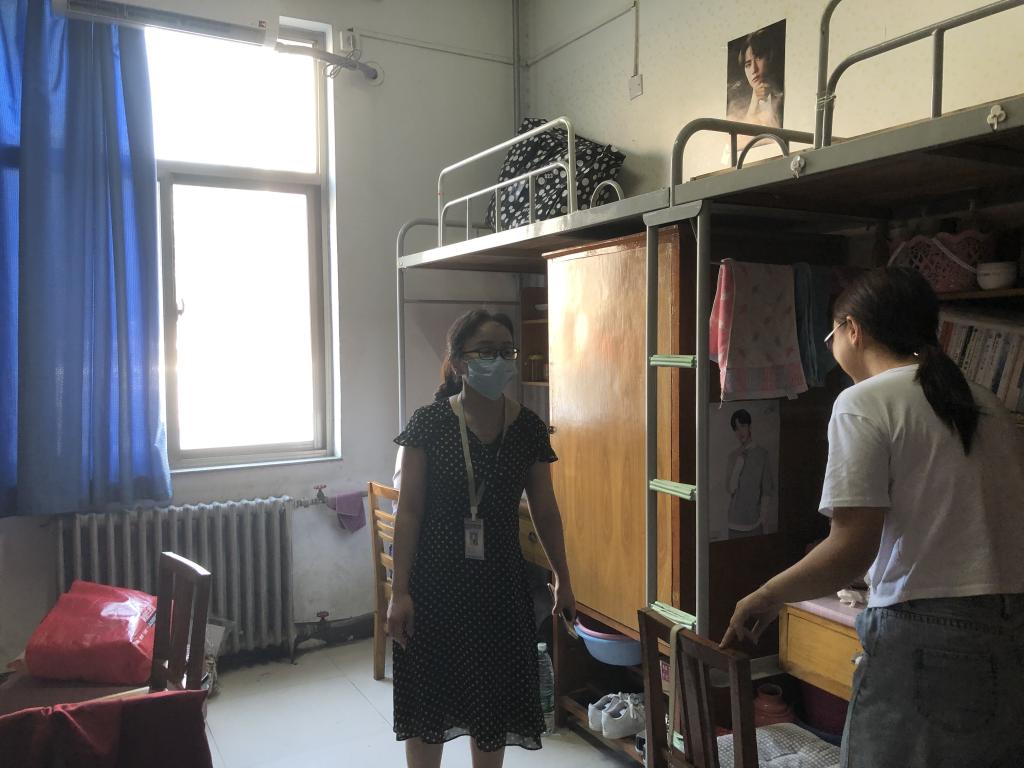 在28号楼宿舍门口,看到寝室楼管老师在给同学们测量体温,院领导前去询问体温测量的距离、有没有测量异常的、宿舍前期消毒情况、卫生处理安排、晾晒被子场地安排等。段院长说,疫情防控一刻也不能松懈,一方面要时刻紧抓防控,另一方面也要关注学生个人情绪,扫除因疫情产生的恐惧心理,让学生感受到返校的温暖和踏实。随后学院领导深入学生宿舍慰问已报到学生,看到同学们拖着重重的行李爬楼梯,领导和老师们主动帮他们搬运行李,同学们激动地表示感谢老师们的热情帮助,回到学校就像回到了家!此外,学院领导亲切询问学生来校的路线、疫情期间在家学习情况、返校后的感受等,同时也向同学们传达我校疫情防控的政策安排,解答了部分同学对我校疫情防控政策的疑惑,同学们都表示理解。从学生宿舍楼出来,学院领导一行又来到南食堂二楼看望学生就餐情况。