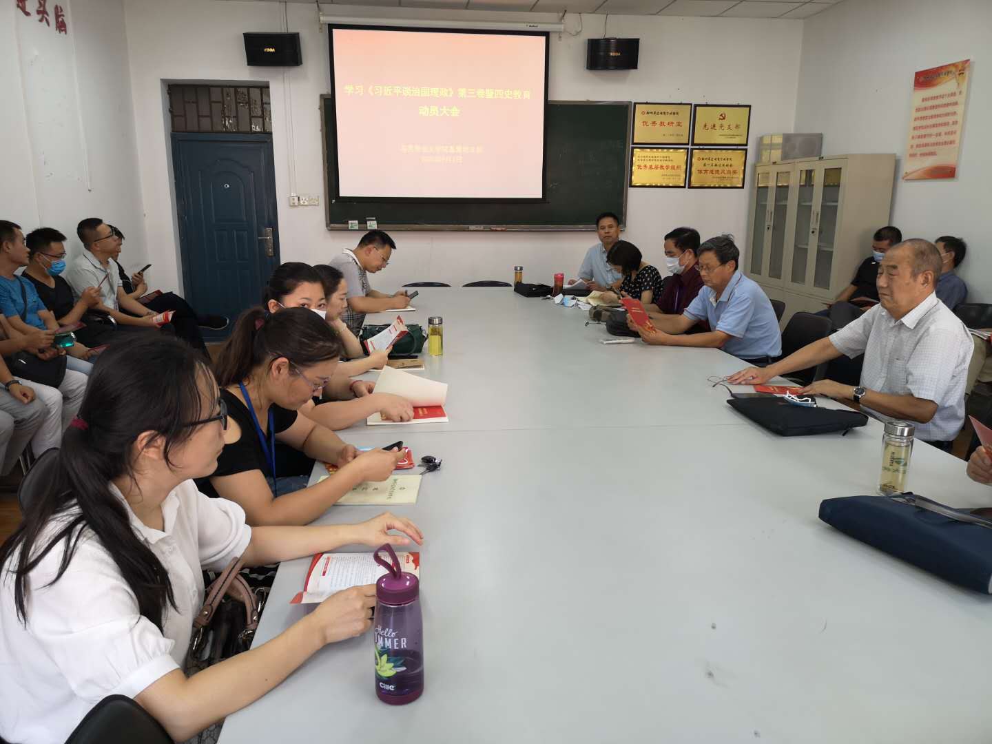 为深入学习习近平新时代中国特色社会主义思想,9月3号下午,马克思主义学院在综合楼211会议室召开学习《习近平谈治国理政》第三卷暨学习“四史”动员会,会议由马院负责人窦峰主持,全体教职工参加。