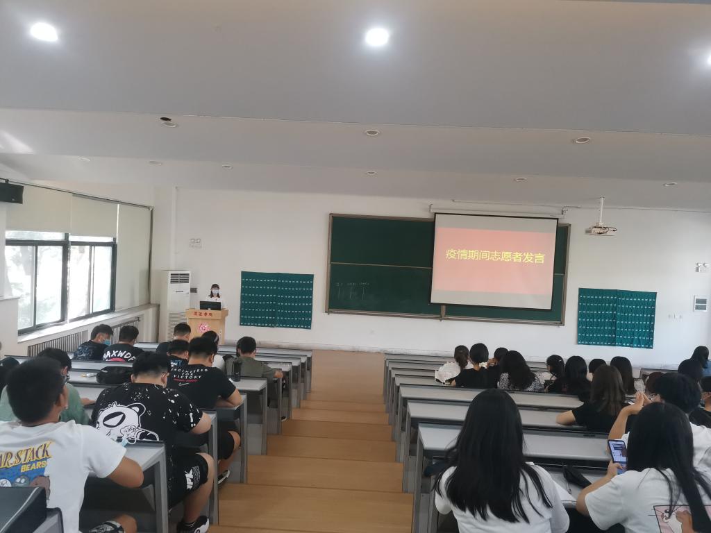 班会开始时,全体师生起立,由辅导员老师带领同学们共唱国歌,嘹亮的歌声,展现了2017级学生的蓬勃朝气;接着,辅导员老师向同学们详细地讲解疫情期间学校管理政策,如,校门出入管理政策、晨午体温检测政策、学生宿舍管理规定、学生就餐相关政策、复课后学生课堂管理以及网络安全等;最后,选择疫情期间的优秀志愿者发言,17新闻班学生代表翟思凯说:“作为一名大学生能够参加疫情防控工作,贡献自己的微薄之力,是一种锻炼也是一种荣幸,希望大家能够在返校后好好学习,毕业后为国家贡献自己的一份力量。”17级学前2班学生石梦欣说“疫情来势汹汹,让这个春节注定与众不同,疫情的蔓延,让我深深的意识到作为一名大学生必须勇敢地站出来,响应党和祖国的号召,亲身体会如何打赢这场战争。”