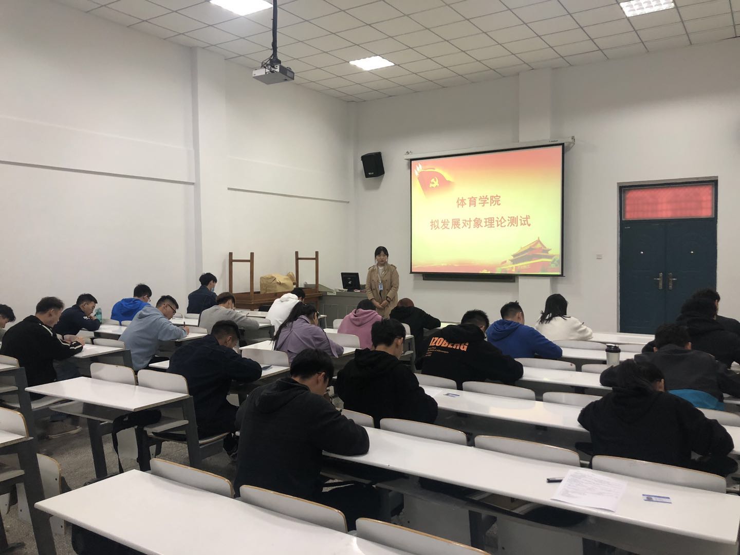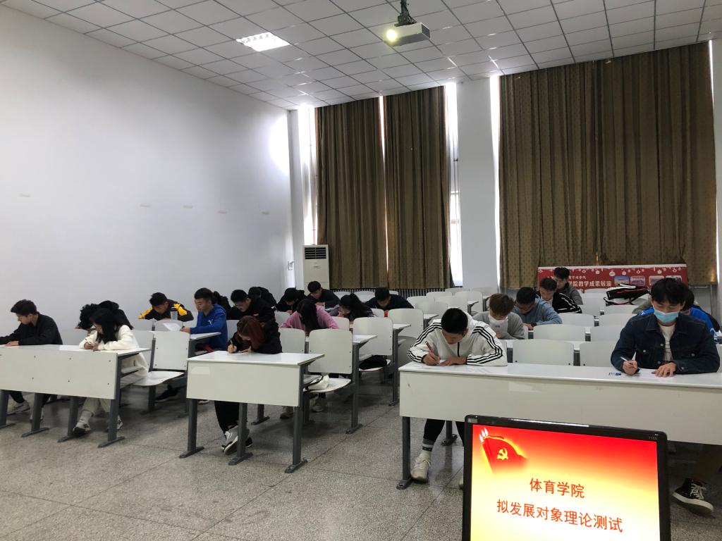 为检验体育学院拟发展对象的学习成果,进一步加强总支党员队伍建设,确保党员发展的质量。我院于10月6日12:30,在体育馆203教室对拟发展对象进行了集中的理论测试。