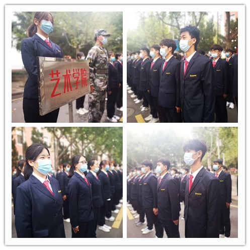 10月3日,我院2020级参训新生在大道上,以最饱满的姿态迎接董事及学校领导的检阅,当校领导走过艺术学院连队的时候,新生们军姿整齐、向他们展示艺术学院学生的风采。