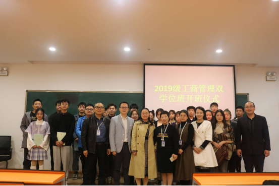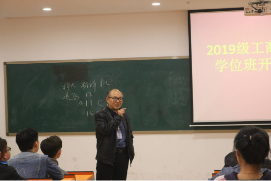 2020年10月9日晚上,2019级工商管理双学位开班仪式在管理学院107教室正式开启。来自艺术、体育、文法、外语、建工等多个学院的同学欢聚一堂。管理学院院长纪德尚教授、工商管理教研室主任董芳芳老师及授课团队全体教师出席开班仪式。会议由冯俊老师主持。