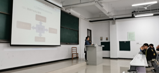 首先,庞玉玲老师从专业发展、课程设置、就业方向、专业竞赛、能力培养等多个方面,为同学们详细介绍了工程管理专业的各项情况,使同学们对所学专业有了更清晰的认识。在讲解过程中,结合本专业人才培养目标,着重强调了能力培养的重要性,以及具体的培养环节设置,比如专业核心课均设置了实训课程,不但锻炼同学们操作软件的能力,还通过团队合作增强学生沟通交流的能力。