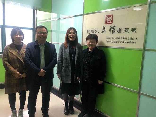 受罗炳菊所长邀请,2020年10月14日下午,会计学院张欣院长、张新成副院长和会计实训中心刘丹主任一行冒雨来到位于陇海路和文化宫路交叉口友纳国际广场九楼的河南立信会计师事务所(河南立信永联资产评估有限公司)洽谈合作,受到罗所长的热情接待。