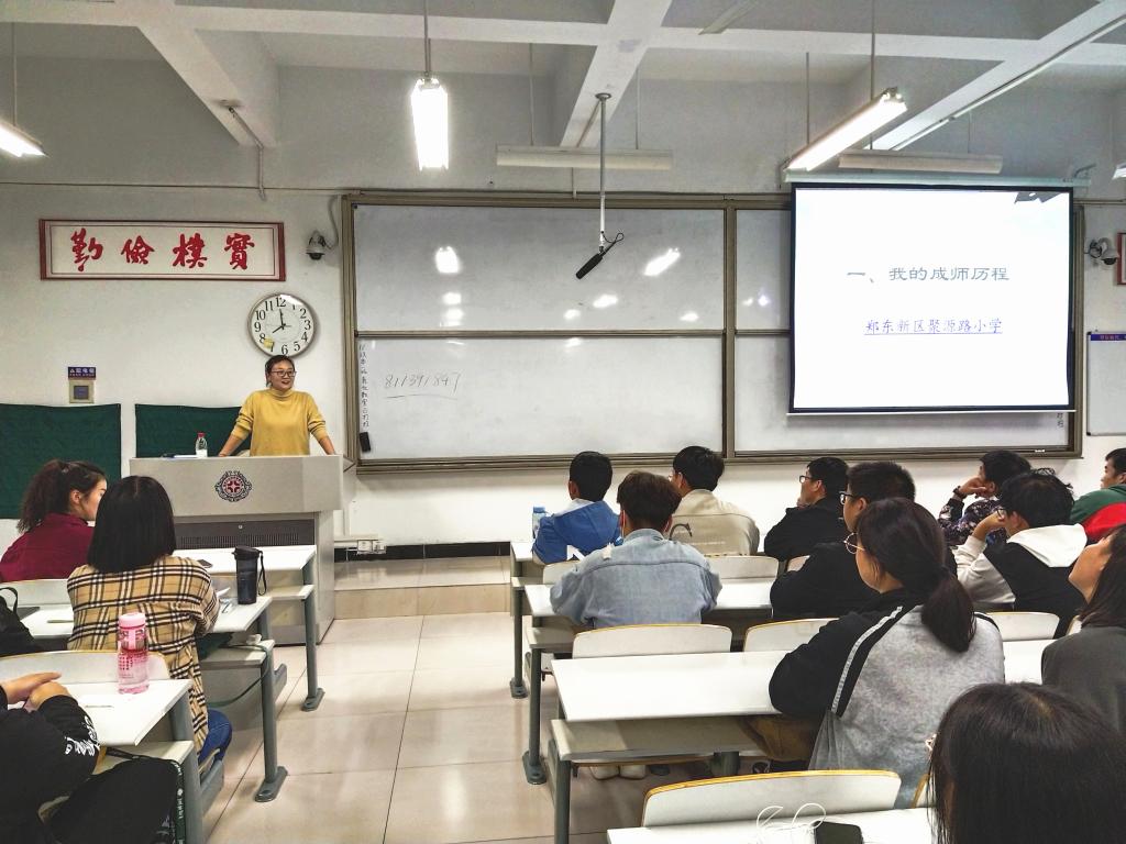 交流会上,于蓓蓓校友作了《成师历程——致我和你的青春》讲座,分享了自己成为一名优秀教师的历程、“我”的一天及小学老师日常工作,帮助同学们进一步了解了小学老师的工作内容与职责。