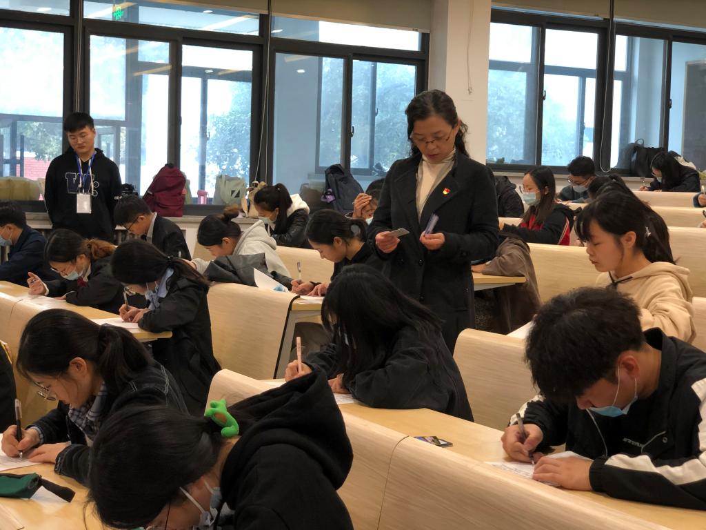 本次测试形式为闭卷,题目包含了党的基本理论知识、十九大相关精神、《中国共产党章程》等,由组织员林方与学生第六党支部书记王岩峰监考。考试期间,学院党总支书记张蕾对考场进行了巡视,全体考生沉着应考,认真答题,秩序井然。