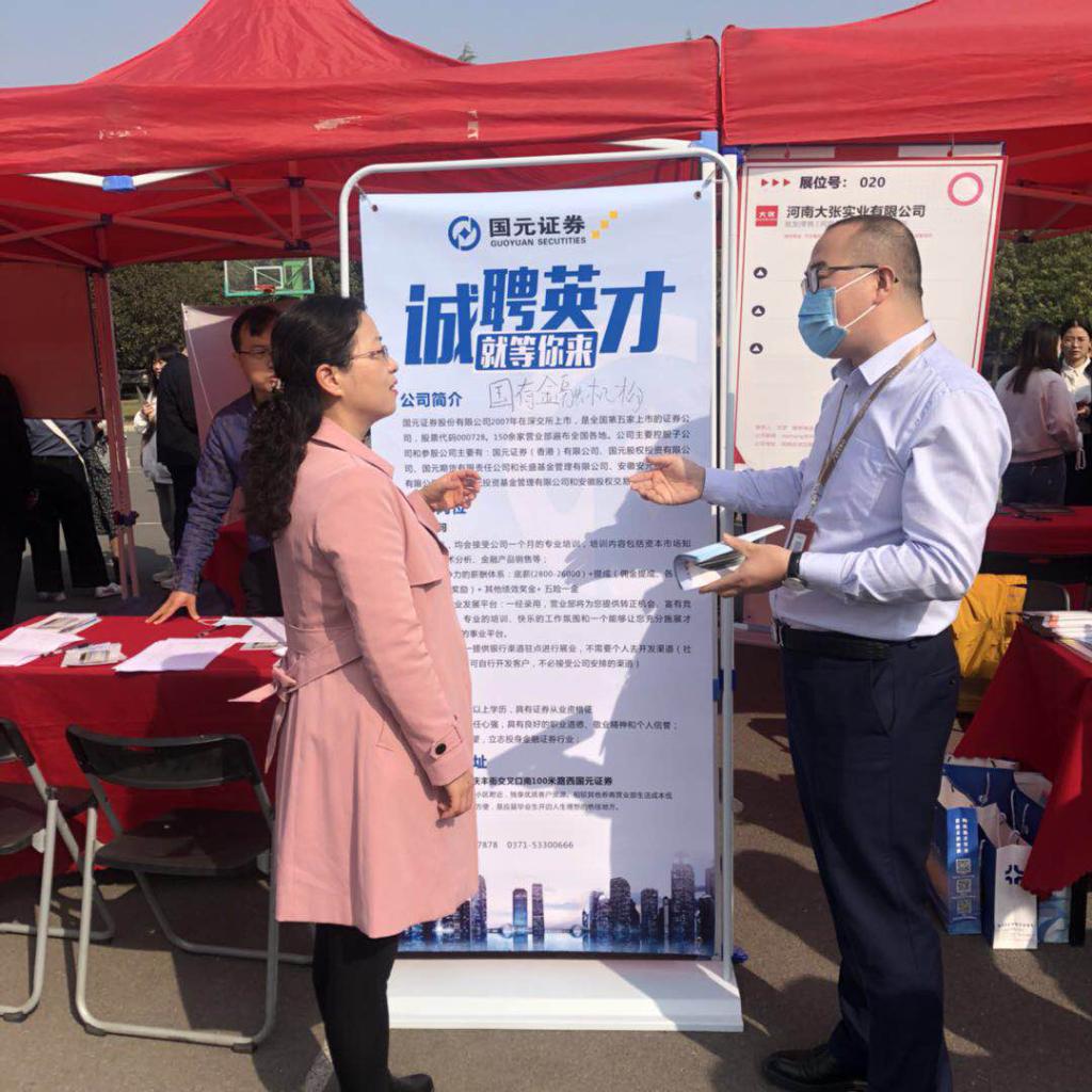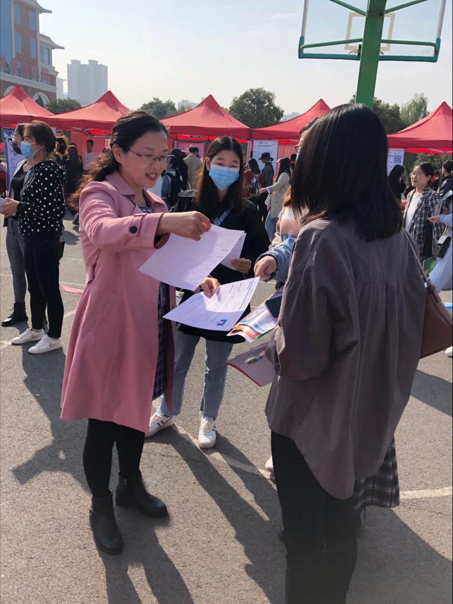 招聘会现场,张蕾书记认真地了解每一家企业,针对企业的岗位需求、企业的薪资待遇等进行详细地询问,倾听企业反馈的信息,并指导辅导员在毕业生就业工作中,以此为抓手,引导学生加强素质锻炼,提升能力,提高个人竞争力。