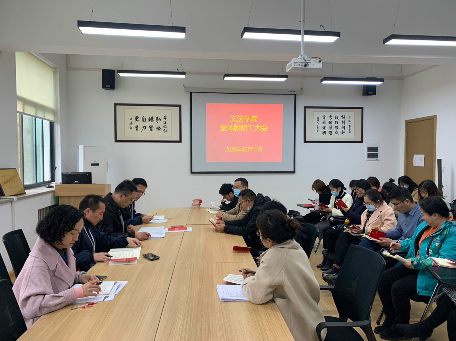 10月15日下午,文法学院召开全体教师会议,会议由段丰乐院长主持,党总支书记刘晓川、副院长赵严俊、行政秘书郑玲玲、教学秘书李南方以及全体教职工参加了本次会议。