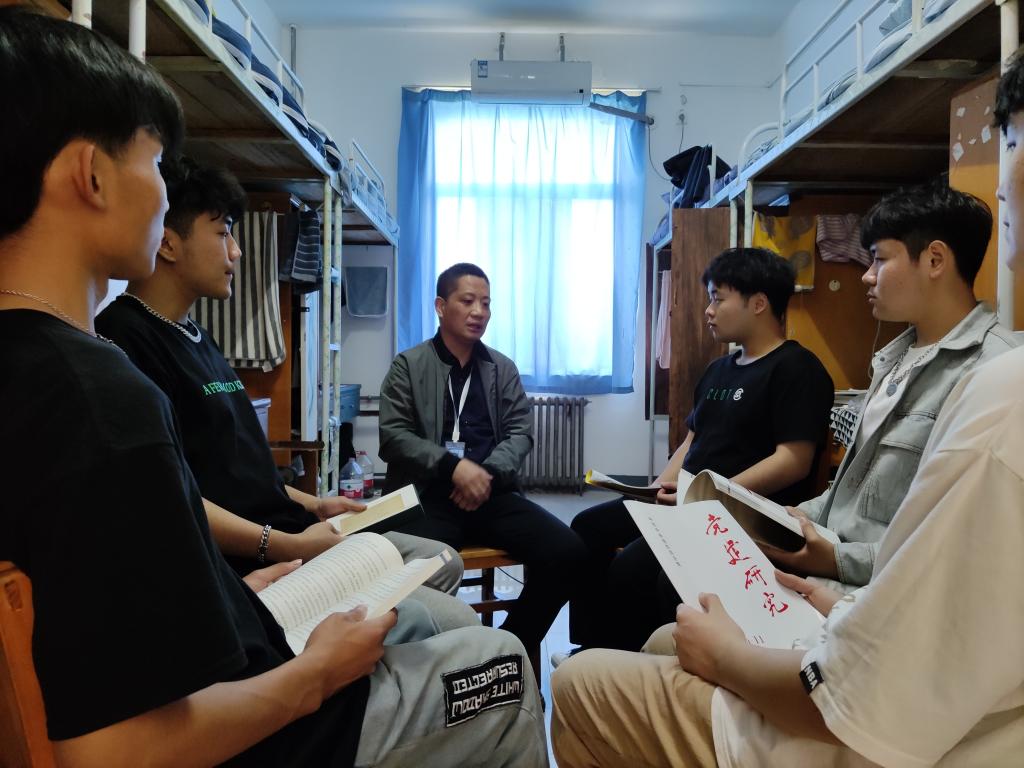 为深入学习贯彻习近平总书记在党史学习教育动员大会上的重要讲话精神,认真落实学校关于开展党史学习教育的实施方案,马克思主义学院组织教师深入宿舍讲党史,营造党史学习宣讲氛围。马院直属党支部书记窦峰介绍说:“这是马克思主义学院党史教育方式的一次创新性实践。中国共产党百年光辉是中华民族宝贵的精神财富。我们把党史宣讲从课堂到宿舍,就是要让党史教育融入学生日常学习生活中,让新时代的大学生深入了解党史、学习党史,切实做到学史明理、学史增信、学史崇德、学史力行,自觉肩负起实现中华民族伟大复兴中国梦的历史重任。