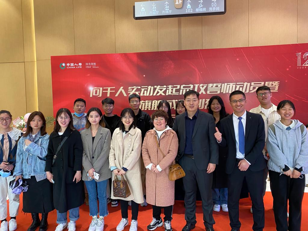 2021年3月26号,金贸学院校企合作单位中国人寿郑州公司旗舰十二周年庆在河南饭店举行,我院丁玥老师、李珺老师及12名金融专业学生参加了本次活动。