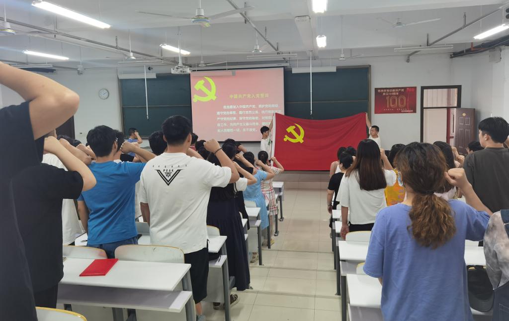 大会进行第三项,由党委书记韩炎涛同志带领全体党员重温入党誓词,并面向党旗宣誓,宣誓过程中,全体党员精神饱满、慷慨激昂。
