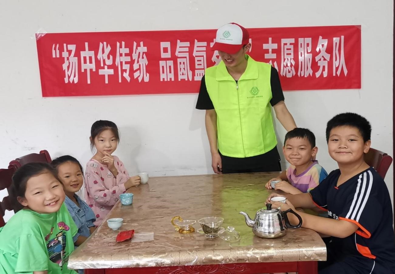 茶文化由来已久,兴于唐朝,盛于宋,明清时得到普及,茶文化是中国传统文化的组成部分。郑州升达经贸管理学院组成“扬中华传统,品氤氲茶香”志愿服务队开展大学生社会实践活动,在2021年8月份走进留守儿童,奉献一份爱心,传授一项技能,引导留守儿童共同弘扬中华茶文化,让中华传统文化真正走进他们的生活,增强文化自信。
