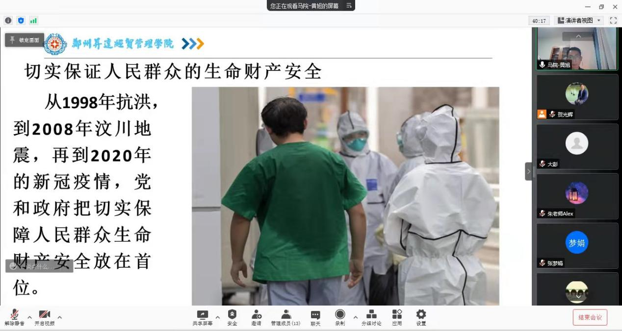 12月10日,基础部第二教研室组织召开了线上党史学习教育研讨会,会议邀请了马克思主义学院黄旭老师做了主题为“党的十一届三中全会以来的国家和党的建设情况”的专题讲座,教研室主任贺光辉同志主持会议,第二教研室全体党员参加了此次会议。