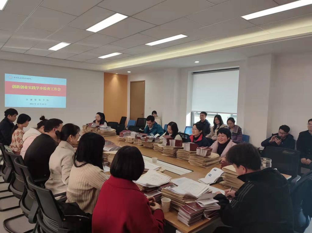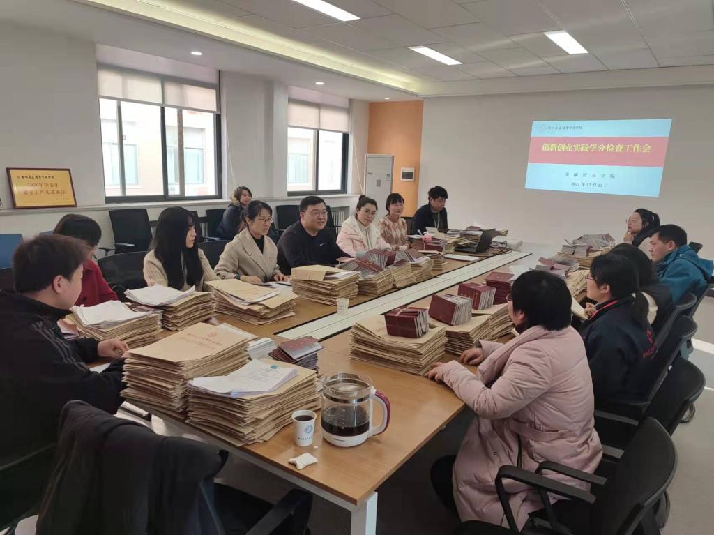 2021年12月22日下午14:00,创新创业学院实践管理科科长彭凯老师带领相关负责老师,以及其他二级学院创新创业工作专员组成的检查小组,在教学3号楼212教室对金融贸易学院18级、19级学生创新创业实践学分档案进行检查。金贸学院参加此次会议的有:金融贸易学院副院长杨毅、教学秘书张阳、行政秘书王娟、双创专员及18级、19级辅导员老师。