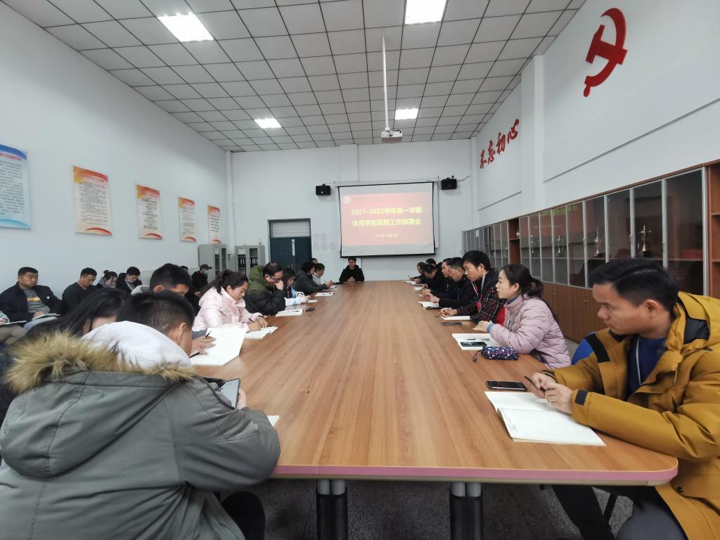 2021年12月31日上午,体育学院在体育馆208会议室召开假期工作部署会,安排部署学院假期学生管理、防疫交通等人身安全、下学期教学等工作。出席本次会议的有党总支书记杨明志、院长张王利和全院教职工参加了本次会议。