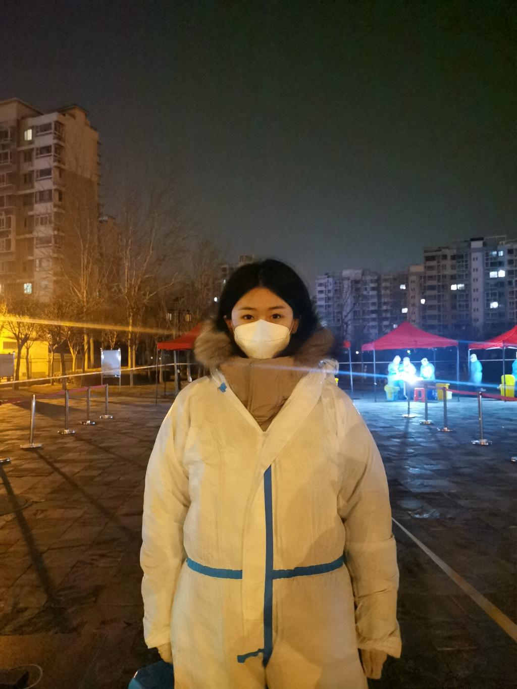 金融学本科5班的刘珩同学主动向所在辖区申请成为抗疫志愿者,她服从居委会的安排,在做好自身安全防护的前提下,对做核酸检测的人员进行信息登记。疫情形势严峻,在这个特殊的时期,志愿者们星夜集合,凌晨五点钟就到达核酸检测点,开始紧张准备检测现场所需的设施、标识,穿好防护服准备为大家做好信息登记。刘珩说,每想到还有许多人在抗疫一线,觉得自己做的还是微不足道。要把志愿精神当做情怀,用实际行动助力疫情防控,争当“逆行者”为家乡送上温暖和关怀,展现团员青年的时代风采。