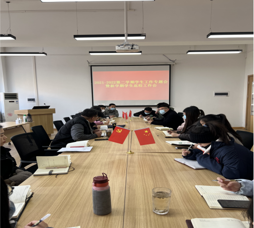 新学期伊始,我院高度重视学生的返校工作,2月22日上午9点,管理学院党委书记张小雁、行政秘书许广庆带领全体辅导员老师在2-305开展本学期学生工作专题会暨新学期学生返校工作会。